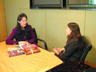 2003年,张纯如在美国洛杉矶接受叶鸿采访,