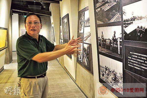 原上海四行仓库总经理吕传良,在今年新建的四行仓库抗战纪念馆讲解1937年淞沪会战历史。(杨立赟摄)